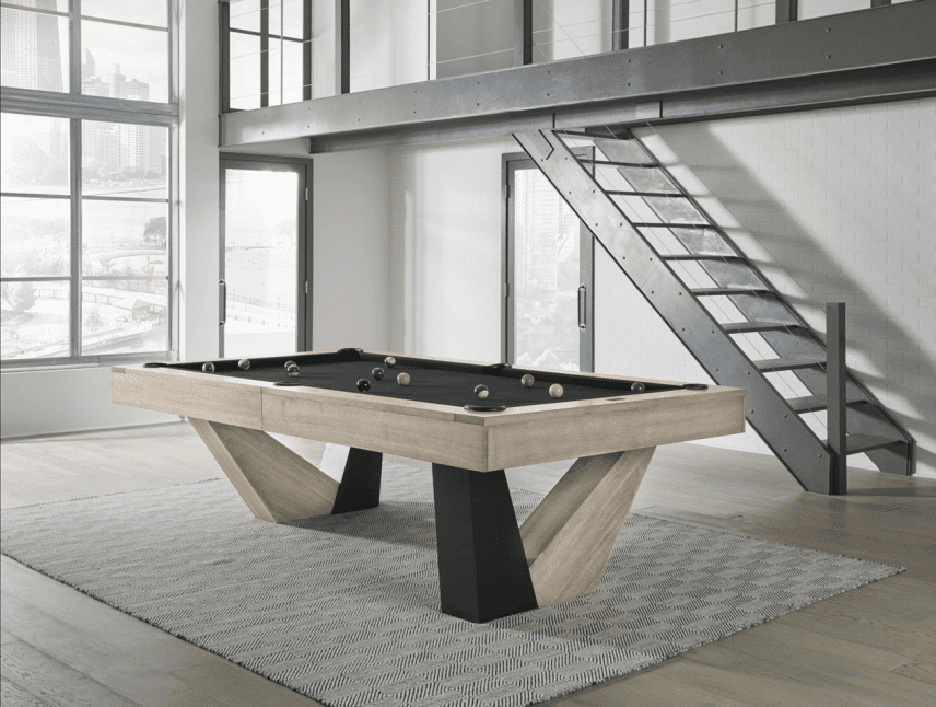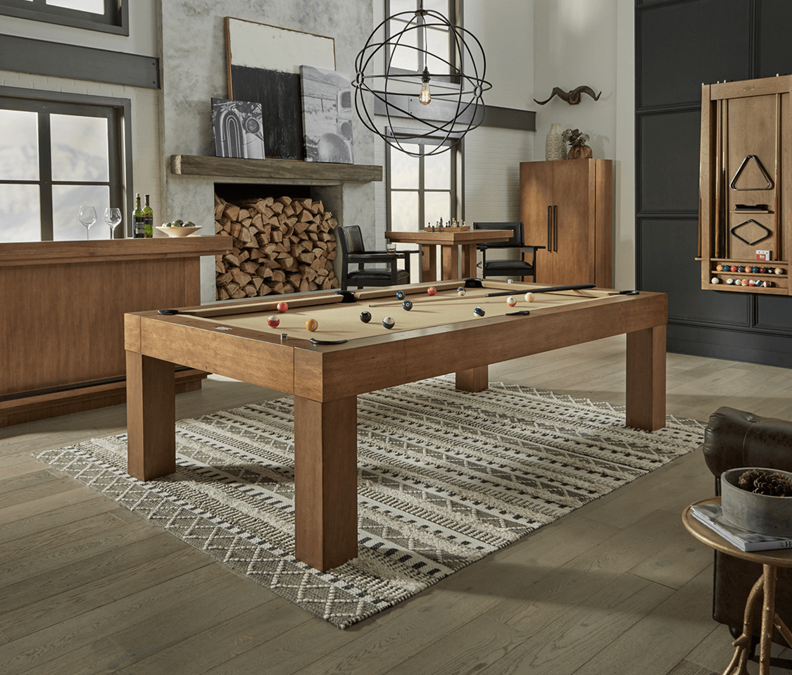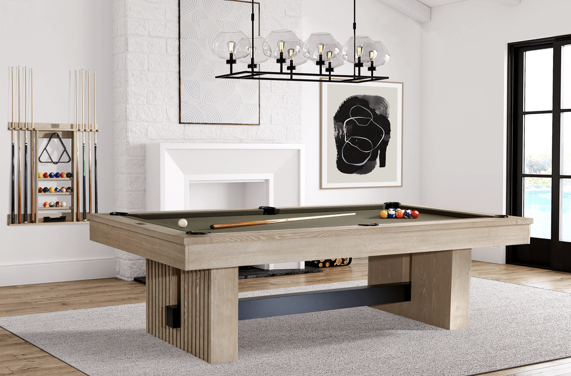 The Vancouver Pool Table by American Heritage combines natural materials and sleek design for a look that feels both modern and inviting. Its wood batten-style base and powder-coated metal beam create a clean, architectural aesthetic that stands out in any space. Built for versatility, the Vancouver pairs perfectly with a matching dining conversion top for seamless transitions between play and entertaining.$5,045.00 -